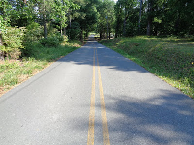 | From the top of the small rise looking back toward where my driveway connects with the road. This little 3/10's of a mile stretch is where I often do my sprinting. |